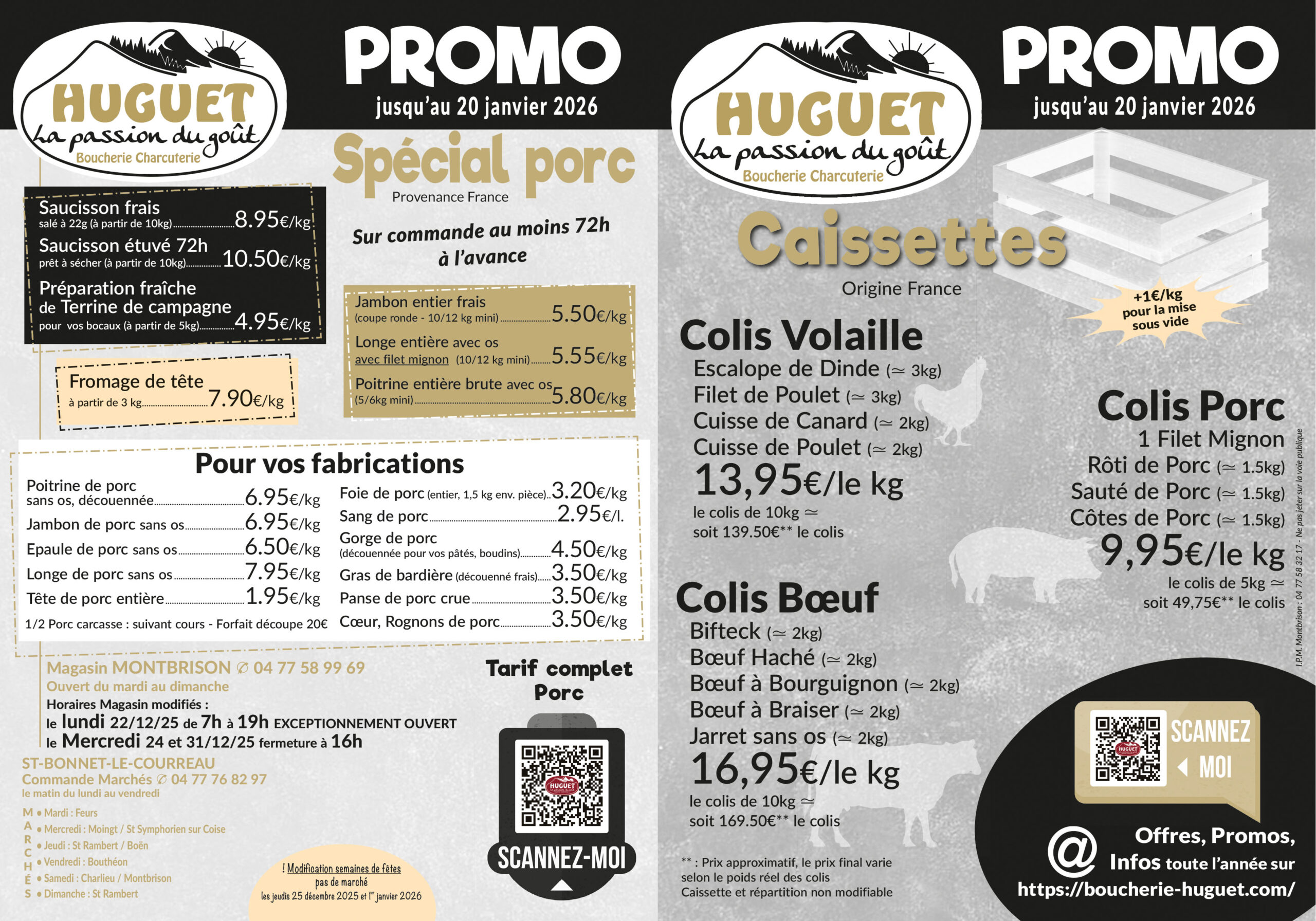 Vous trouverez au fil de votre visite des informations complètes sur nos produits de boucherie, nos points de vente (magasins et marchés), nos offres promotionnelles, etc.